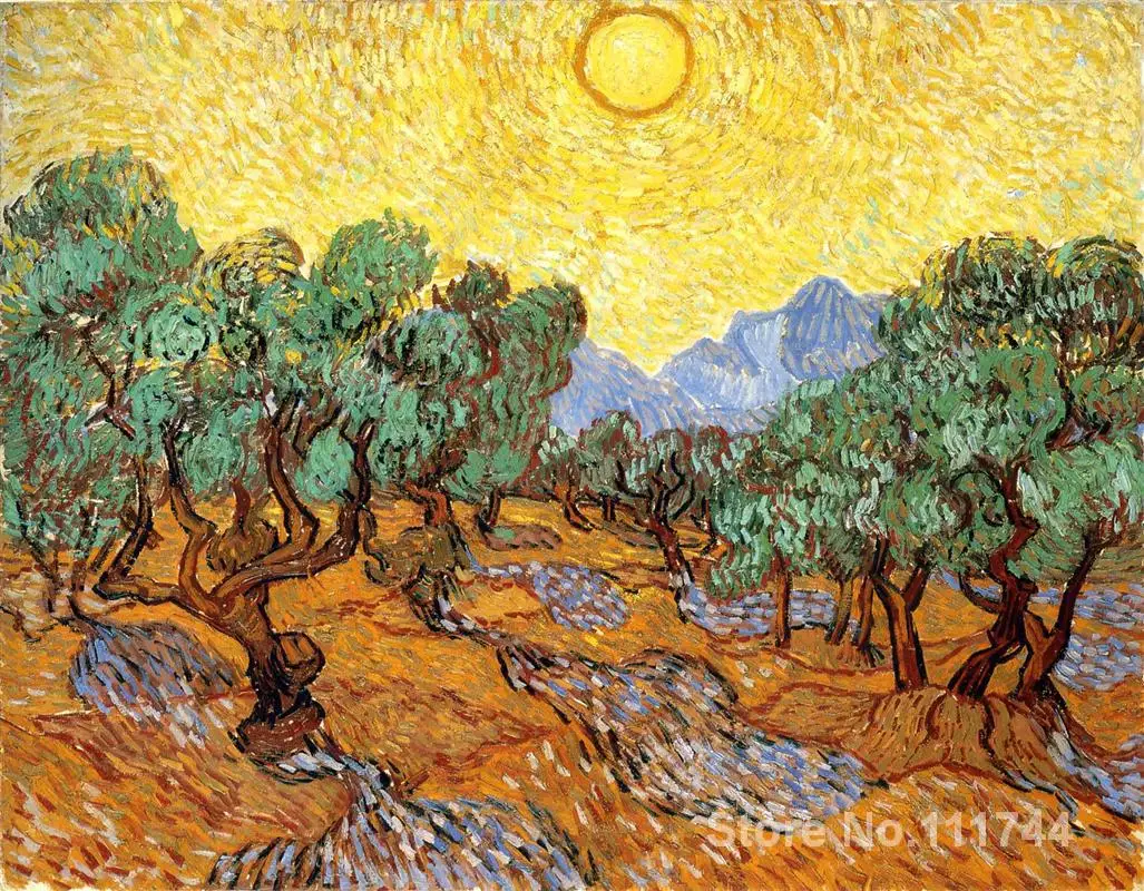 Schilderijen door Vincent Van Gogh Olijf Bomen met Geel Sky en Zon handgeschilderde op canvas Hoge kwaliteit|painting purple|painting scarfpainting fir trees - AliExpress